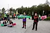 Det er sitteblokade på veiene. I tillegg sperrer seks kajakker og seilbåter havna.
