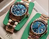Lansering av nye modeller i 2023 – Rolex lanserte Sky-Dweller med blå skive i rosegull. Jeg innså umiddelbart at jeg måtte endre skivevalg på bestillingen min og byttet fra brun til blå skive. I 2023 bestilte jeg også to Datejust-modeller i stål som en gave til foreldrene mine i anledning deres 30-års jubileum i desember 2024. Dette var en Datejust 31 mm og en 36 mm, begge med matchende blå skiver.
