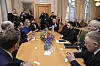 Zelenskyj ble tatt imot på rød løper utenfor Stortinget av stortingspresident Masud Gharahkhani (Ap) rundt klokka 9.15 og dro videre i møte med ham. I løpet av besøket på Stortinget var det også planlagt et møte med de parlamentariske lederne.