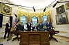 I think Russia with the price of oil right now, oil has gone down, we are in a good position to settle, they want to settle. Ukraine wants to settle.» Sa Donald Trump til reportere i Det ovale kontor.